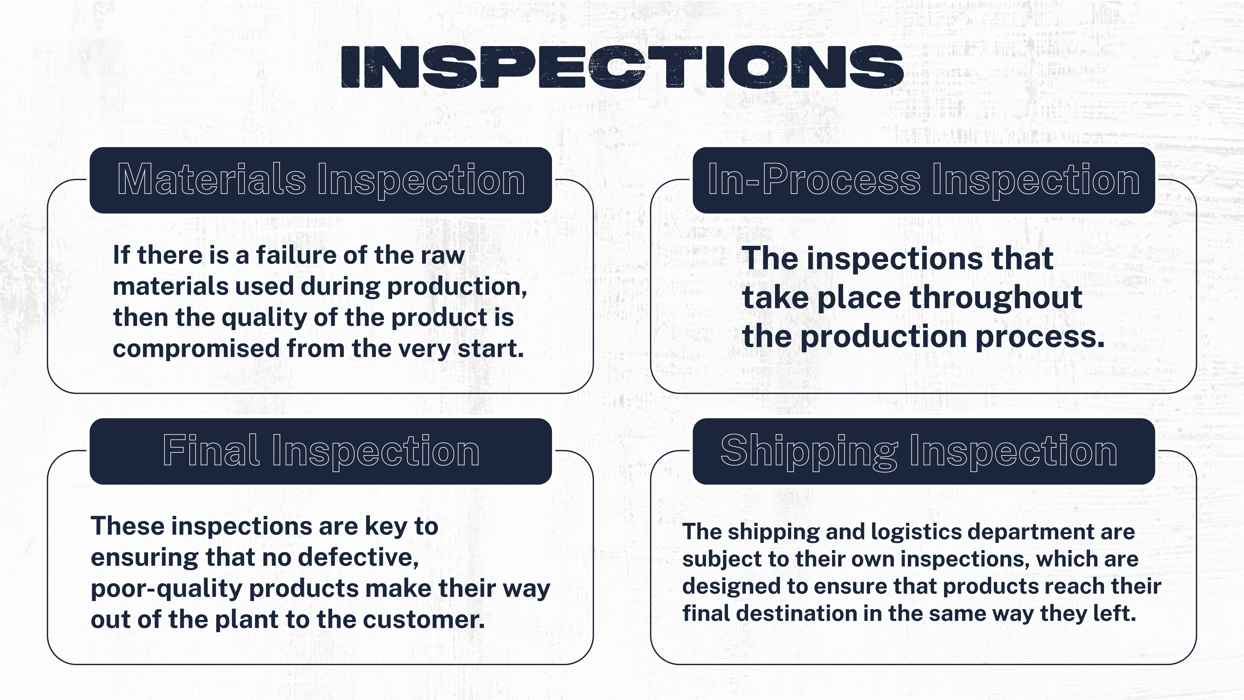 Inspections are the driving force of quality control. They provide a way to measure results against predefined standards and ensure that output falls within those specified parameters.