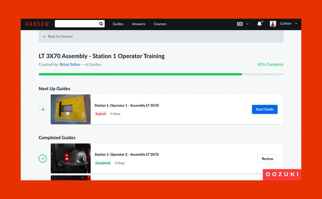 Dozuki is a workforce management application that includes tools for companies to streamline the training process. Having a centralized, digital location for training materials, and a built-in learning management system gives companies an advantage when implementing in-depth training.