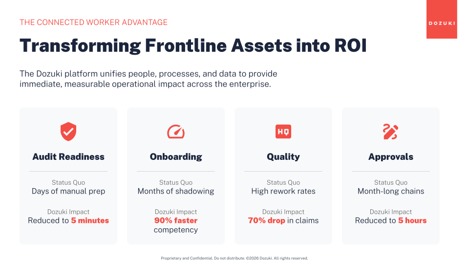 The Dozuki platform provides the digital infrastructure to transform your frontline from a liability into a strategic asset. By replacing static manuals with standardized work instructions, leaders are seeing immediate, measurable ROI: