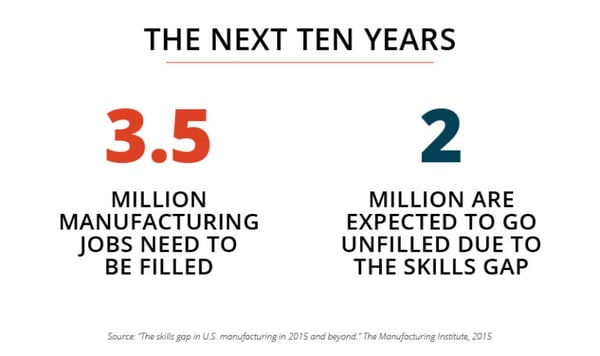 There is a pending manufacturing skills gap impacting the United States workforce. Millions of positions are expected to go unfilled in the coming years, with reports estimating over 2 million positions will need to be filled by 2025.