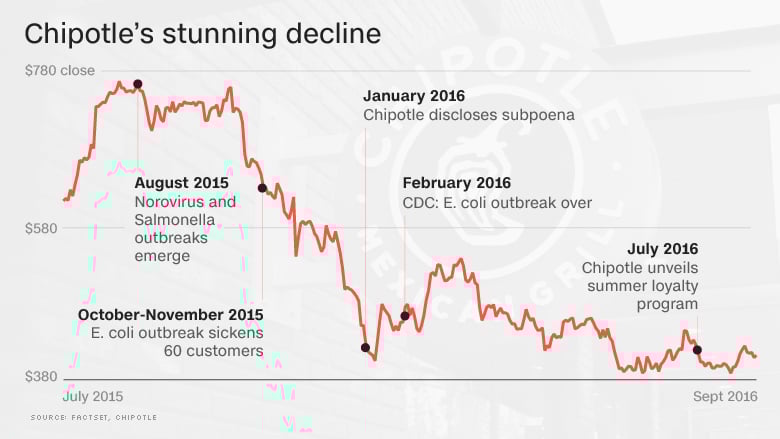 In 2006, McDonald's divested its controlling interest when Chipotle went public. The IPO saw the stock rise from $42 a share to $650 per share with the wild crescendo continuing. By the third quarter of 2015, Chipotle’s revenues had reached $1.2 billion, a whopping 639% increase in just over 10 years. The company was still enjoying a great ride, that is until the outbreaks began.