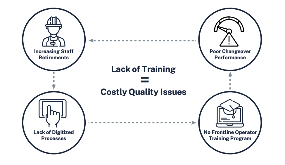The compounding issues of increasing staff retirements, lack of digitized processes, and lack of formal training program — the company was seeing spikes in quality issues and downtime.